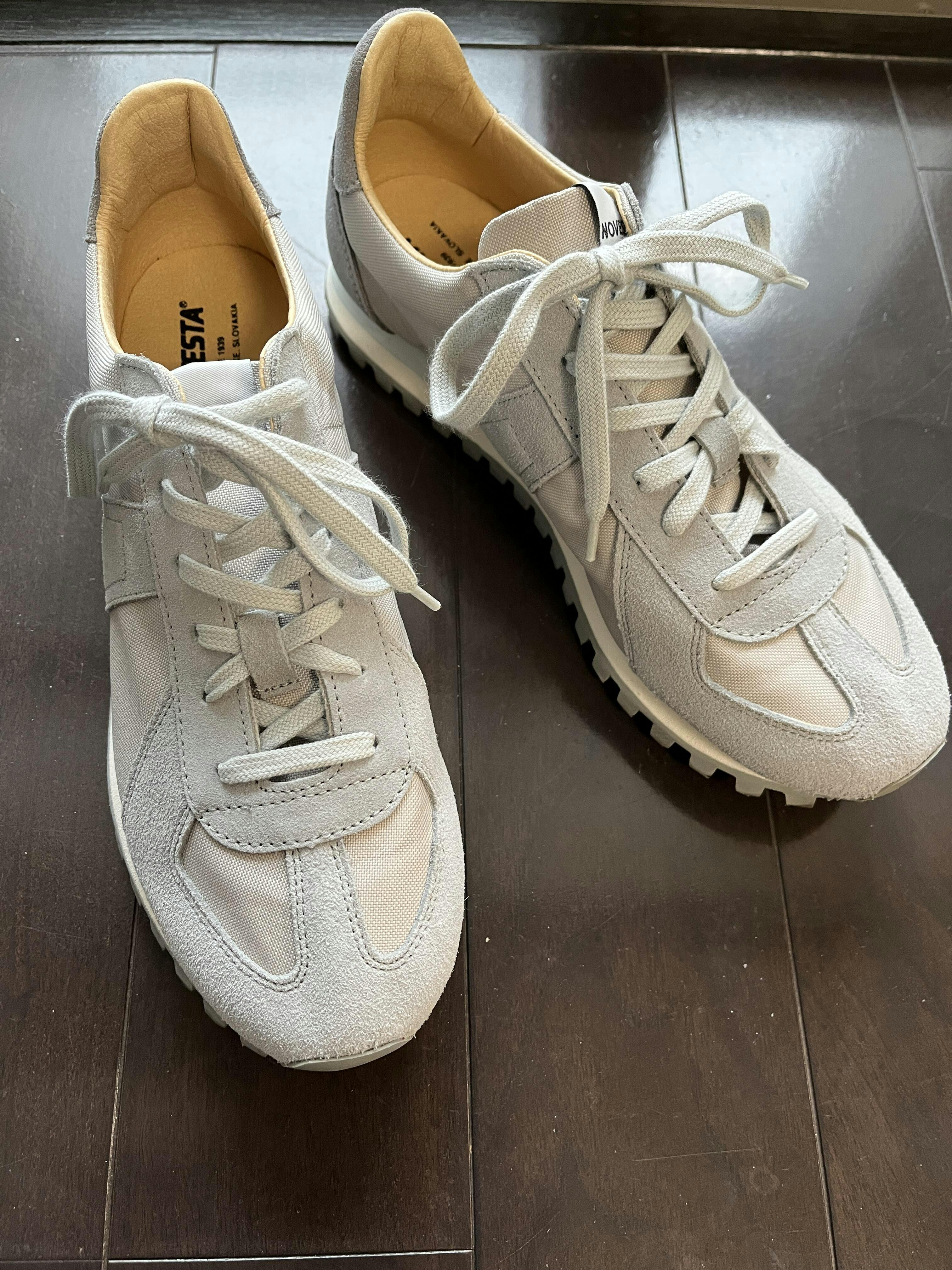 チェコ・スロバキア時代に工場で制作されていたGERMAN TRAINER(ジャーマントレーナー)をアップデートし、オリジナルのMARATHON TRAILソールのモデルにした一足。履き心地を追求してシェイプを現代的、そしてジェンダーレスなデザインにジャーマントレーナーをアップデート。革はイタリアの牛革を使用。軽やかな一足。チャコールグレーカラー。